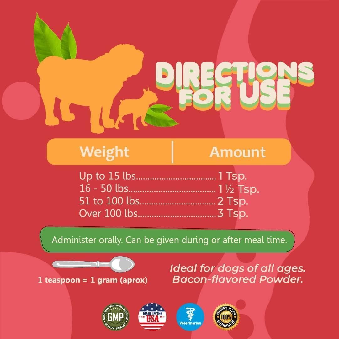 2.for dogs. sprinkle over food & mix. 1 gram a day for small dogs up to 15 lbs, 1.5 grams for dogs 15-50 lbs, 2 grams for large dogs over 50 lbs scrumptious beefy bacon flavor: beef liver & bacon flavor added for taste. don't worry about your pup not liking it. it's totally yummy! the #1 top choice cranberry wellness powder for pooches with picky palettes. goodbye to dog urinary problems: premium dog cranberry supplement naturally & safely boosts immune system, helps to